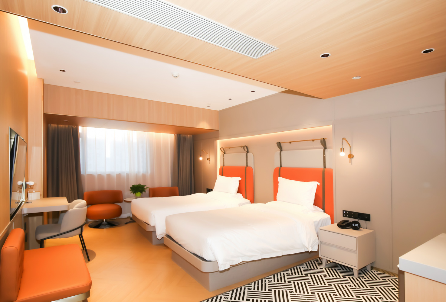 本案例位于天河区CBD的繁华核心——广梅汕大厦,将整栋大厦改造为酒店项目,总建筑面积约1万平方米。在原有项目中,通过对酒店采光、环境通风及地理位置进行分析设计,按照甲方的要求,将酒店改成商务旅行的公寓型时尚酒店——丽呈格芮酒店。